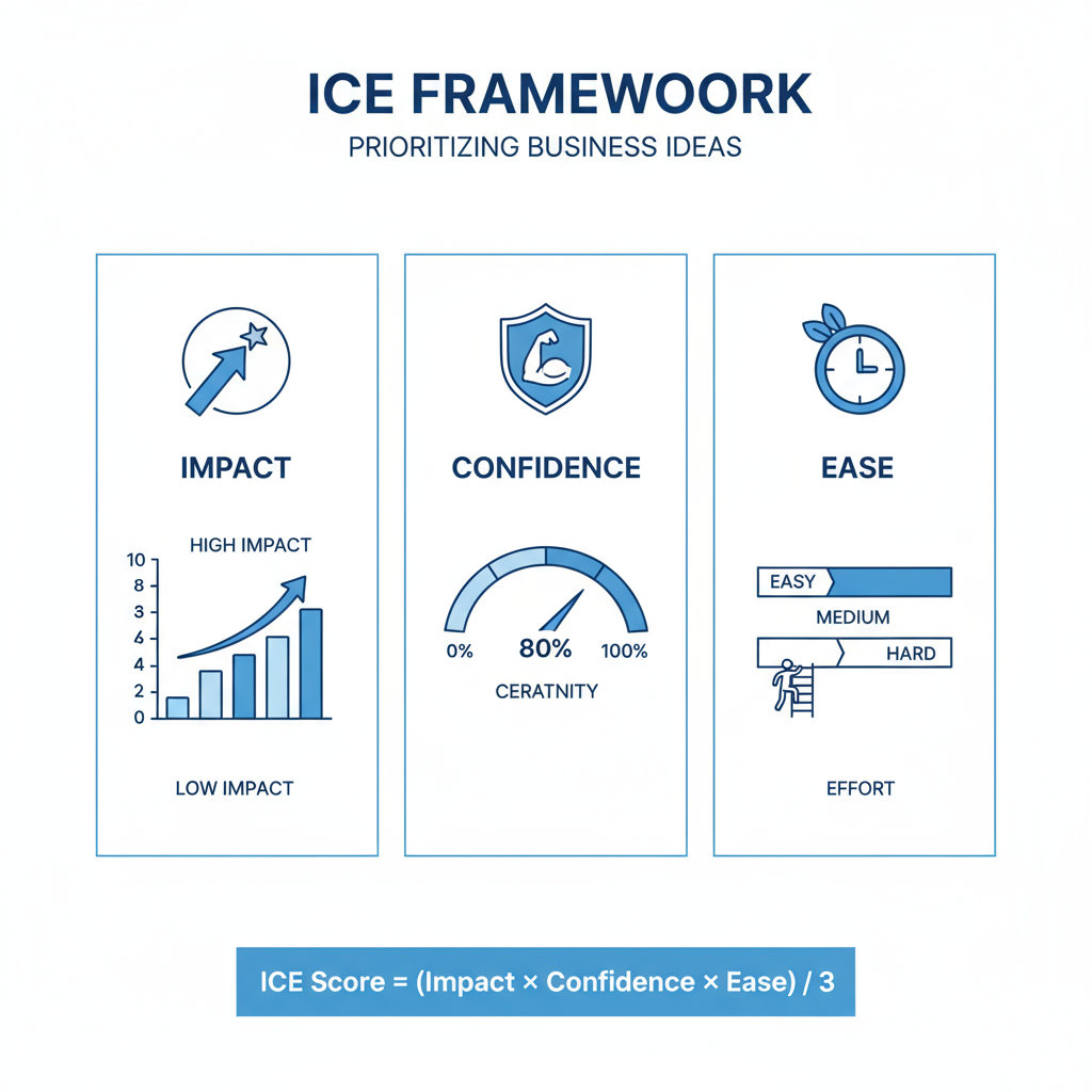 Перемножив эти три показателя, вы получаете ICE Score, который помогает объективно выбрать наиболее перспективные гипотезы для реализации.