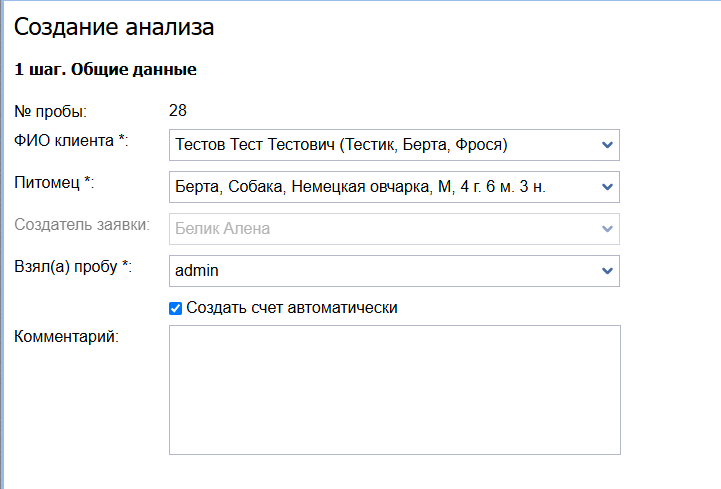 - Счета на оплату формируются автоматически (достаточно один раз настроить и при создании анализа поставить соответствующую галочку).